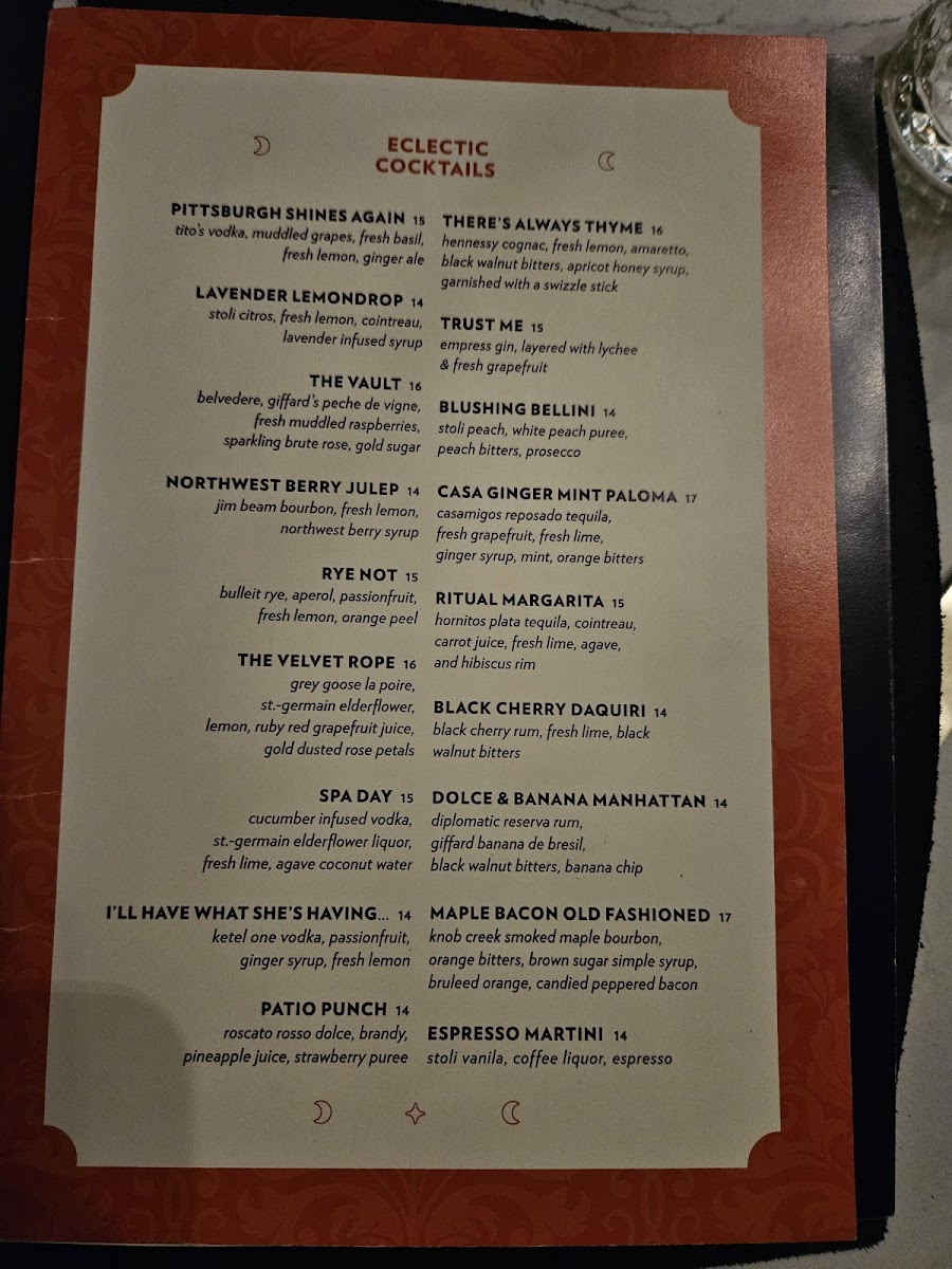 Welcome to Ritual House, an enchanting culinary gem nestled in the heart of Pittsburgh. This vibrant establishment offers a delightful menu that emphasizes comfort food with a twist. Must-try dishes include the Short Rib Nachos and Nashville Sliders, each priced at just $11.00, ensuring you indulge without breaking the bank. For a more sophisticated opener, savor the Fried Burrata, elegantly paired with pomodoro sauce and basil oil for $17.00.